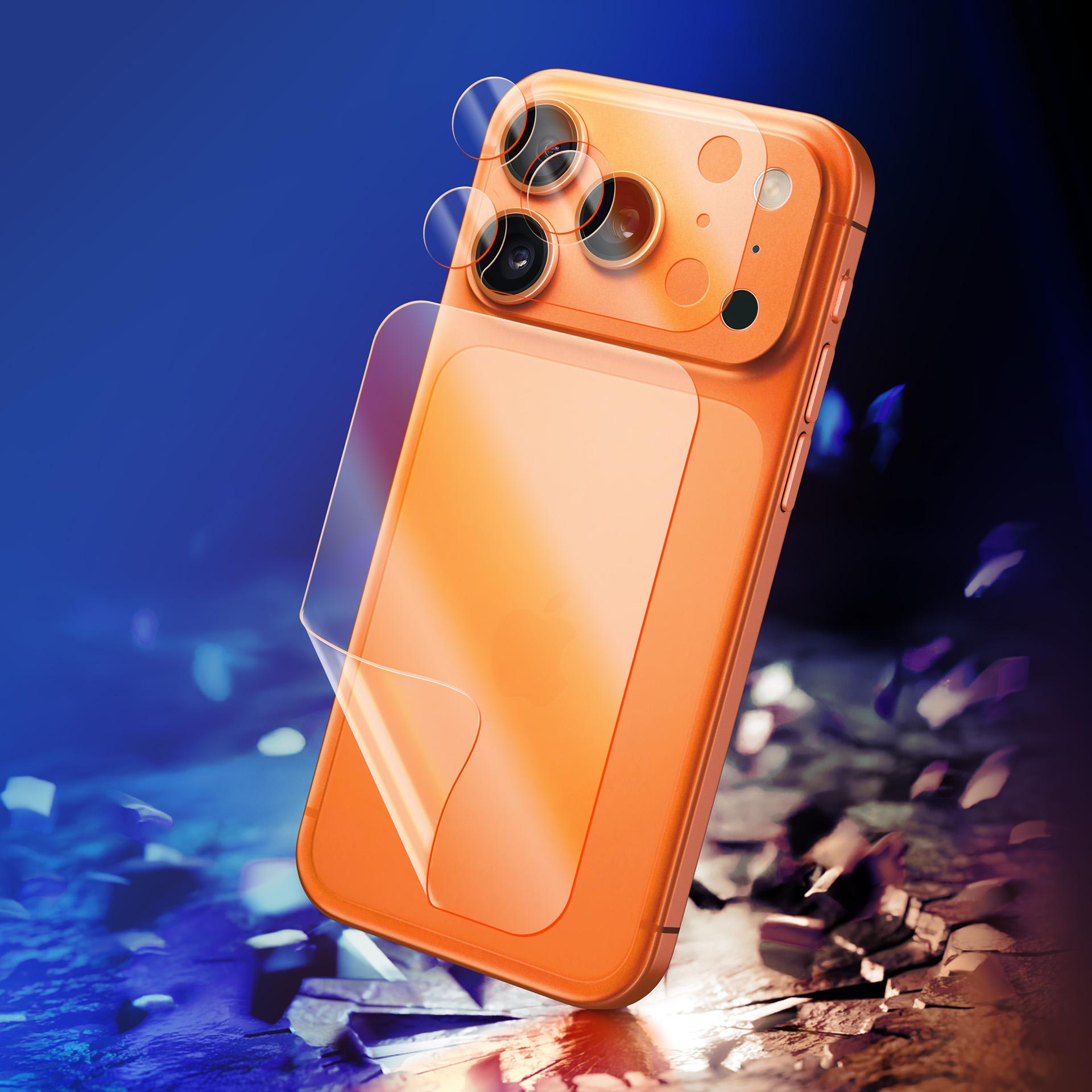 Apsauginė plėvelė telefono nugarėlei ir hibridinis stiklas objektyvui bei kameros salelės apsaugai Apple iPhone 17 Pro Max